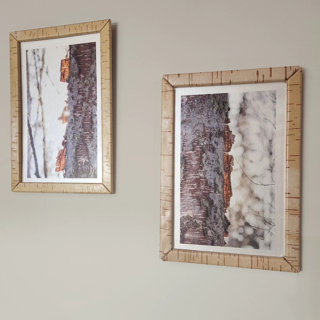 So I ordered prints! I decided to “save money” by not ordering metal prints or standouts and then spent 4 or 5 late evenings figuring out how to make my own frames, in between watering things and following up on homework. I ended up wrapping/gluing birch paper to some 3/4″ trim and then gluing everything to some plywood that came with our house. I rasped and sanded edges. I recut all the trim when my limited understanding of geometry failed me. I cleaned up my mess when I was done. The ready to go standouts seem less “expensive” now but I actually like these a lot better!